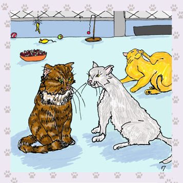 stray. His capture and rescue by a young woman and her cat rescue. How he has to
